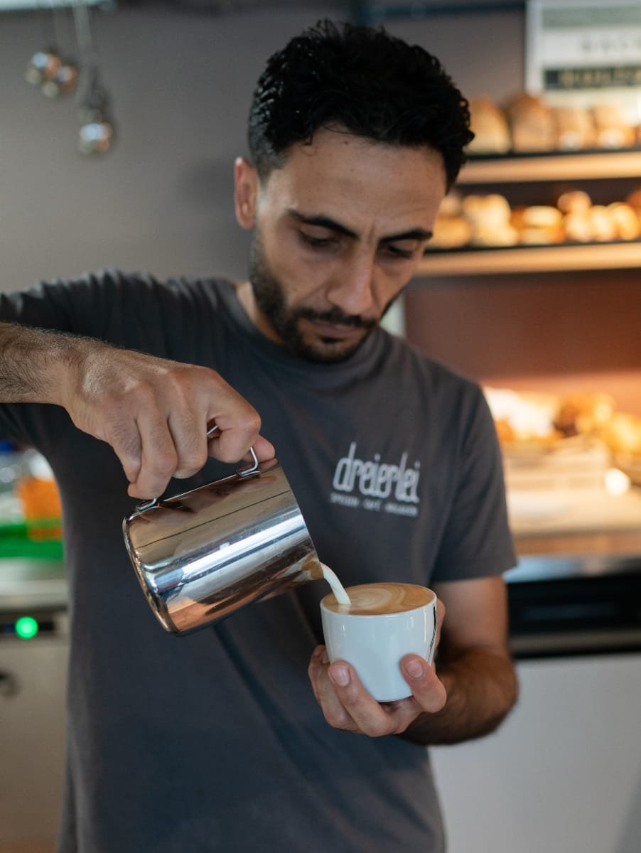 Im dreierlei kannst du bei feinem Bio-Kaffee und hausgemachtem Gebäck entspannen, dich mit Freunden austauschen oder einfach eine kleine Auszeit genießen. Alles, was wir servieren – vom Frühstück bis zum Mittagsmenü – wird frisch und in Bio-Qualität zubereitet.