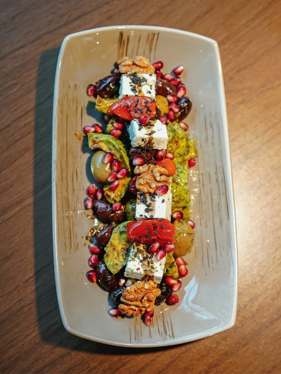 - dreierlei Salat mit Feta, Oliven & Nar € 9,80